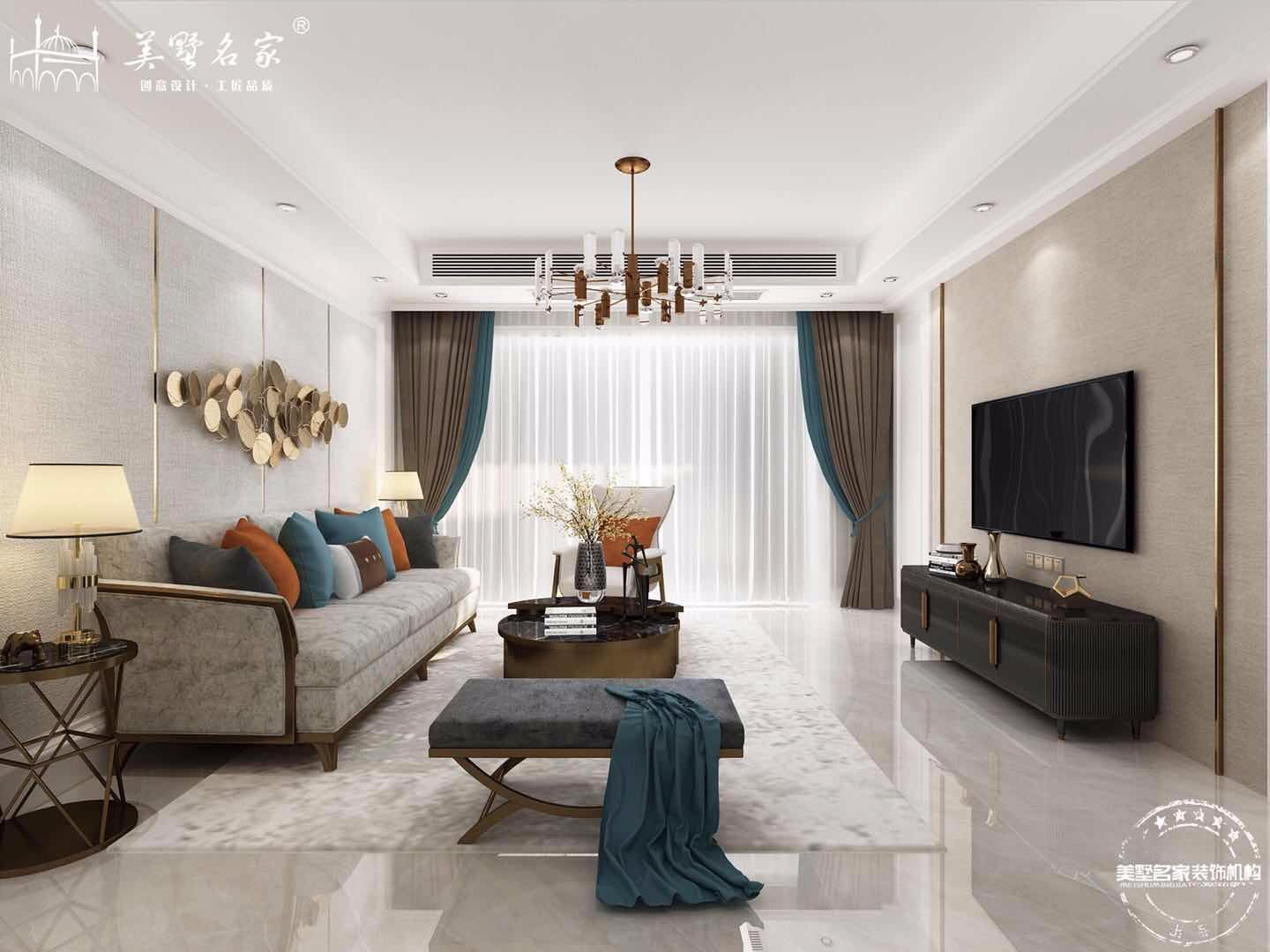 客厅暖色调,简洁的线条,混合着迷人的温暖与华丽的色彩。完美演绎低调奢华的生活方式。