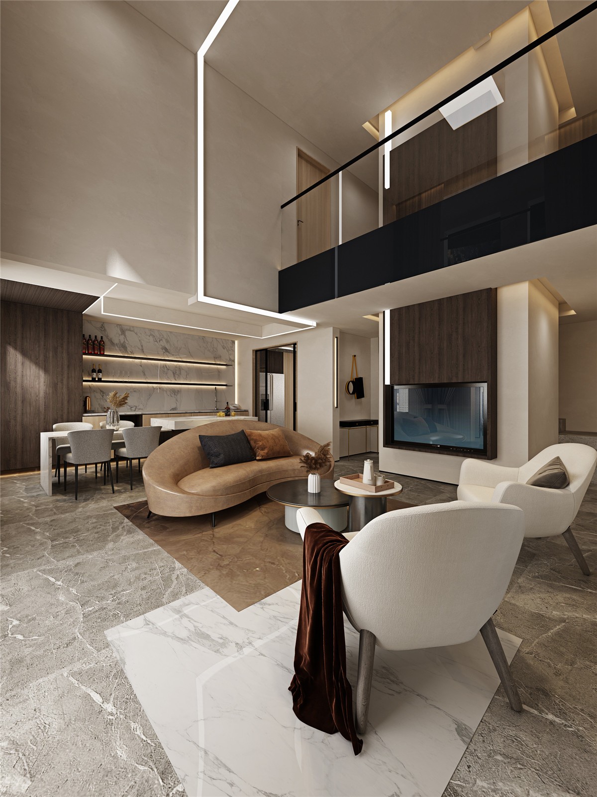 整体通透,小复式,中间客厅悬空。空间大气天成。