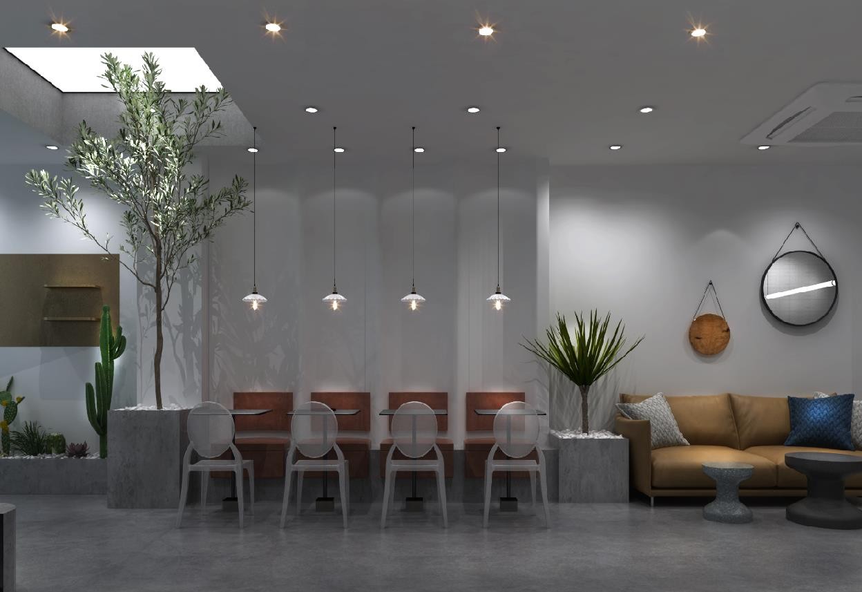 甜品店:水泥艺术漆、水磨石,人造石,乳胶漆,不锈钢