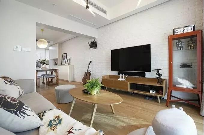 电视背景墙用文化砖打造,浓浓的文艺清新气息。