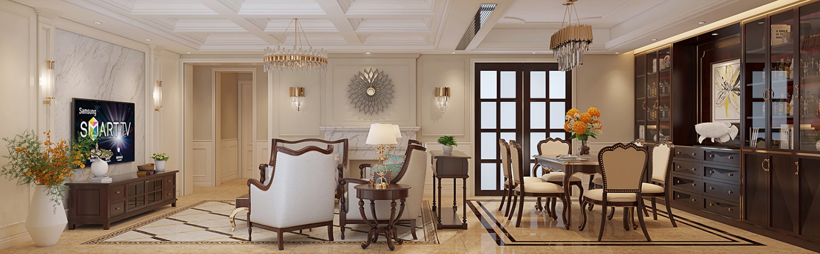 暖色主色调,搭配美式专有线条、装饰挂件