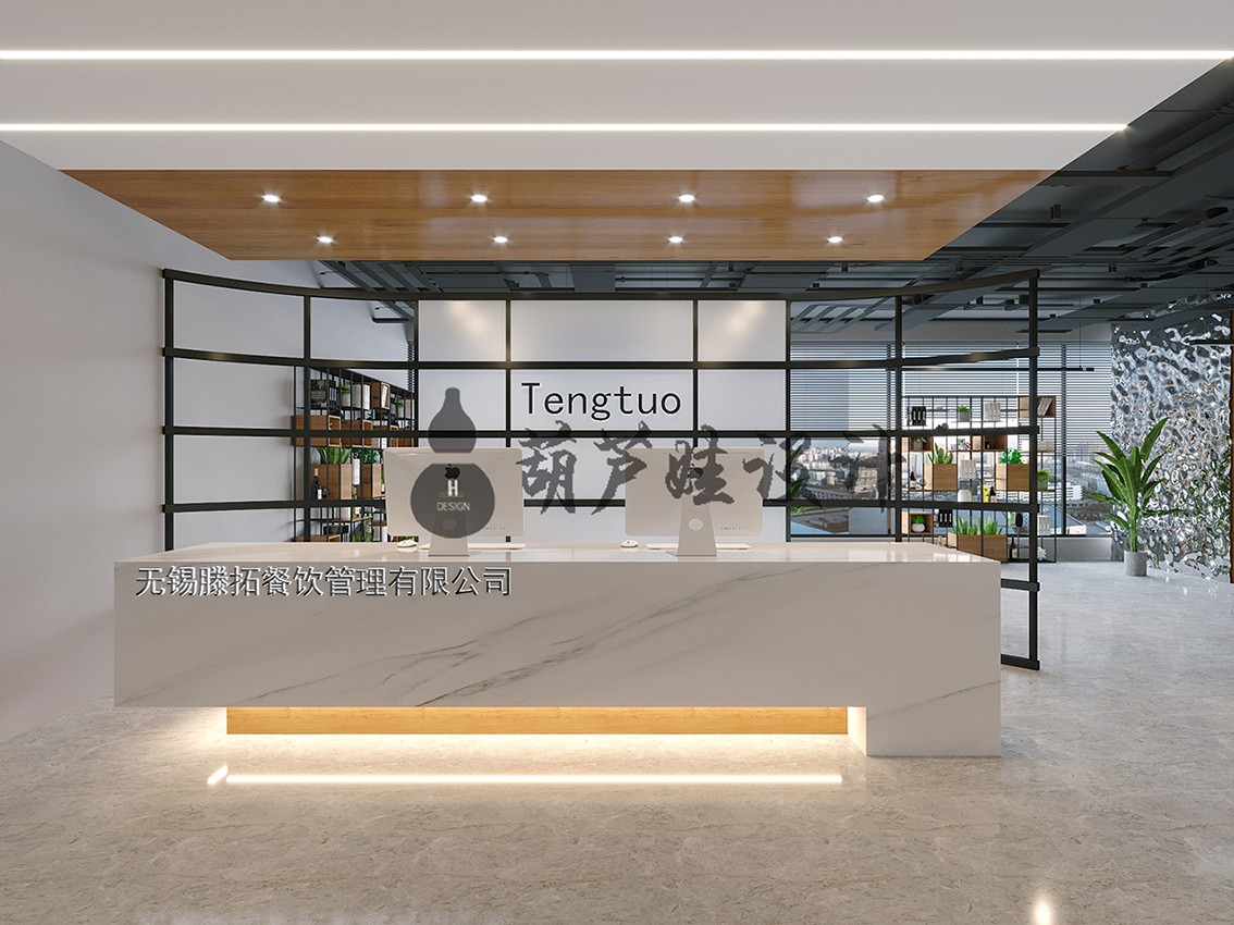 工位区域简洁大方,六边形灯赋予空间灵活性