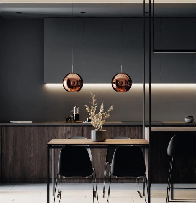设计师搭配的色调营造出一个充满科幻感的用餐空间。