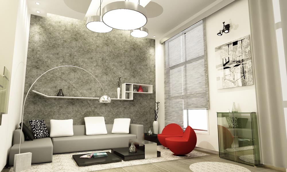 灰色系为主调,外加彩色来点缀。