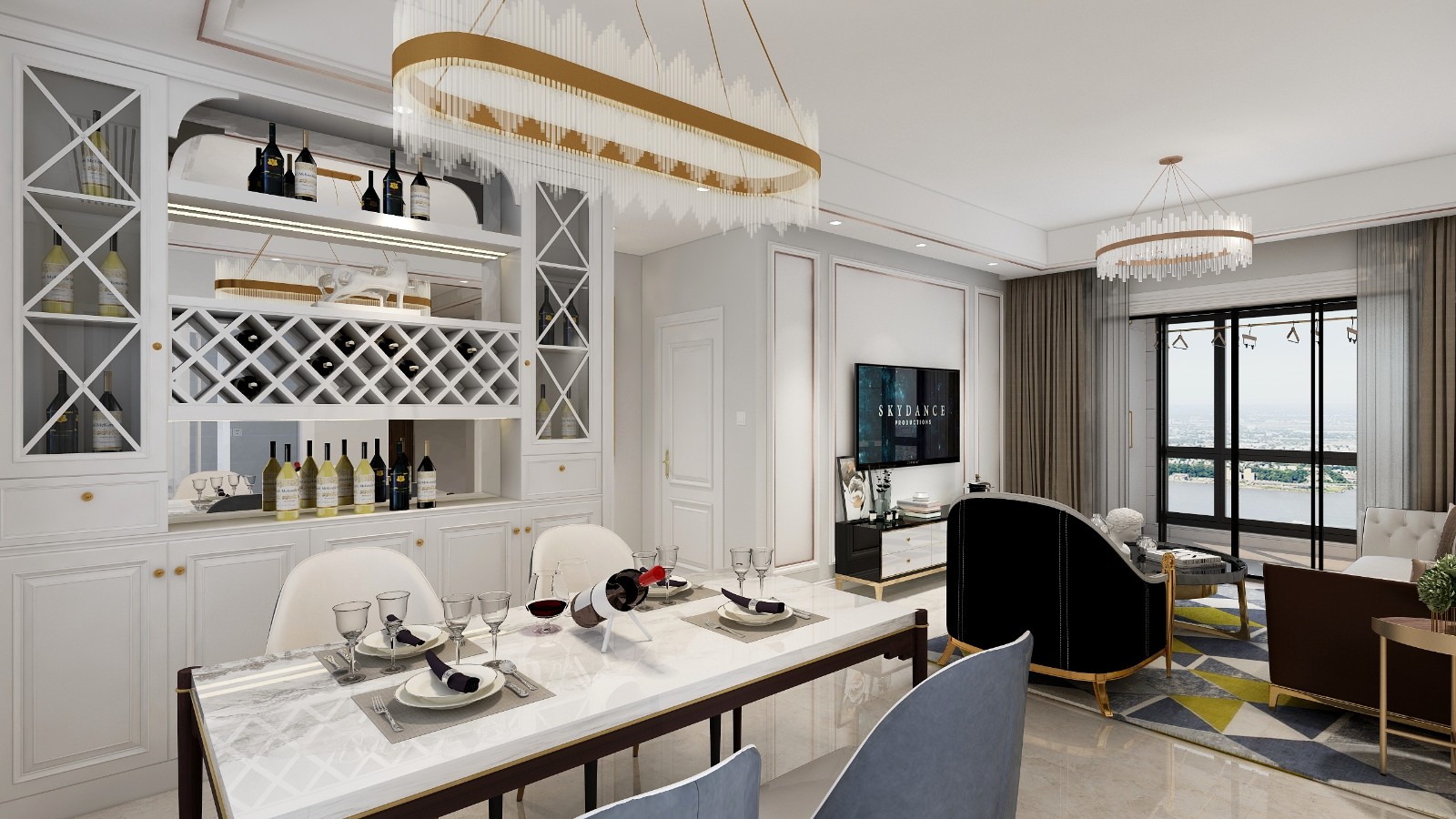 餐厅的餐边柜运用了玻璃的开门,让整个空间更通透