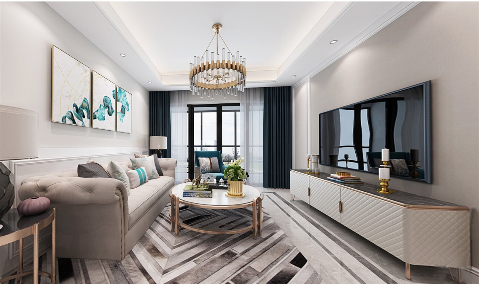 电视背景去除传统美式风格的繁杂感,取其精髓,干净利落,落落大方。搭配美式与现代元素融合的家私,异常出彩。