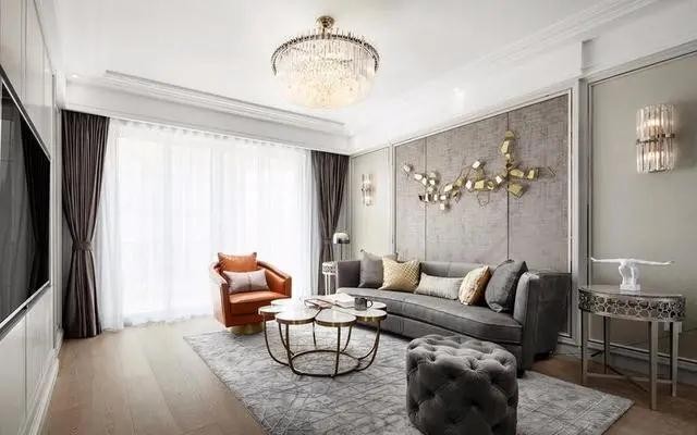 客厅的元素,通过装饰摆件的点缀丰富整个空间让色彩的冷暖与材质的刚柔相融,在晶莹透亮的水晶灯映射下,绽放出生活美学的品质。
