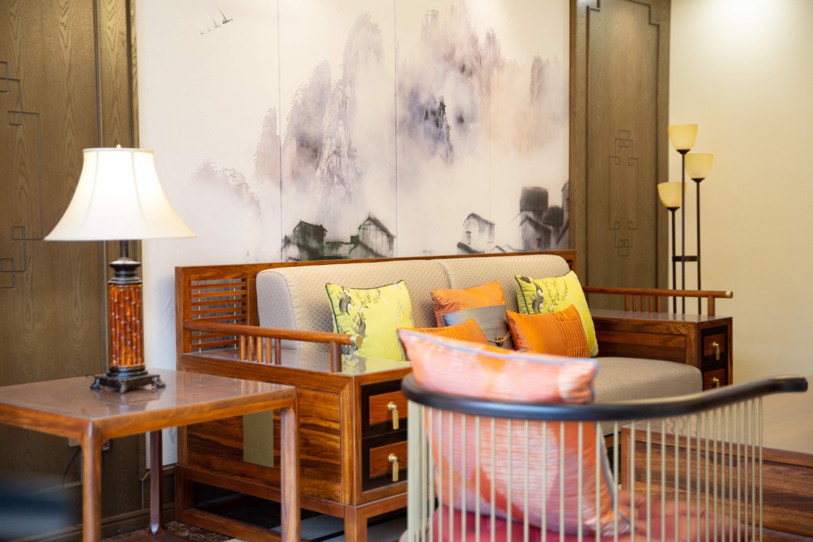 书房保留了中式风格原有的庄重、典雅,木质的方形桌子和中国风浓郁的坐椅,充满书卷气,在这挥毫泼墨一整天都不会觉得累。