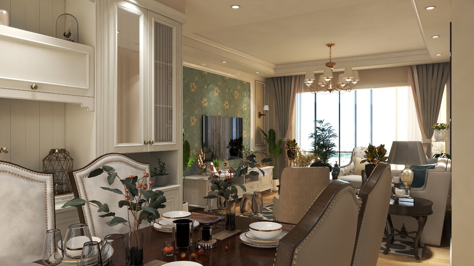 根据业主要求设计美式复古风格,整体为暖色调