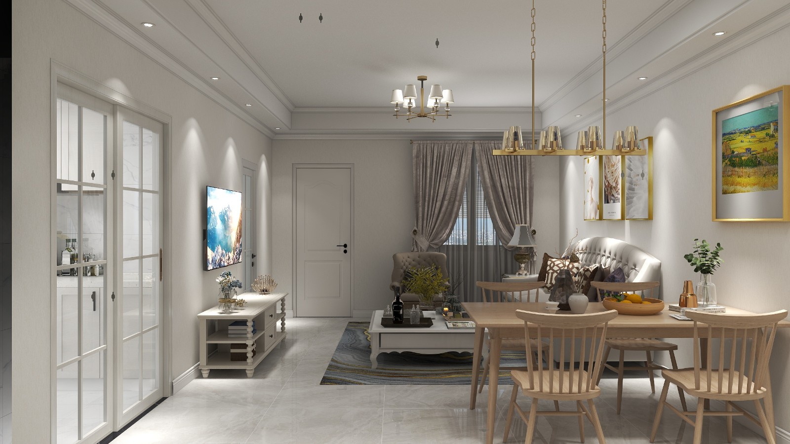 大双眼皮吊顶加上石膏线条,增加空间层次感但是却不影响层高对小空间的影响。