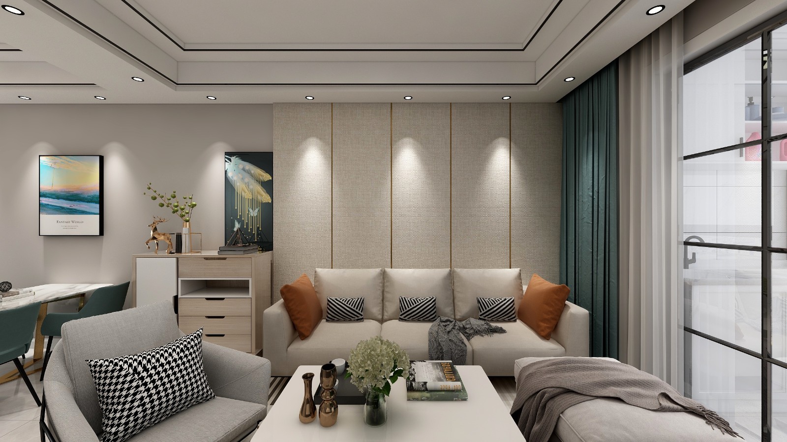 硬包沙发背景,不锈钢线条顶面镶嵌