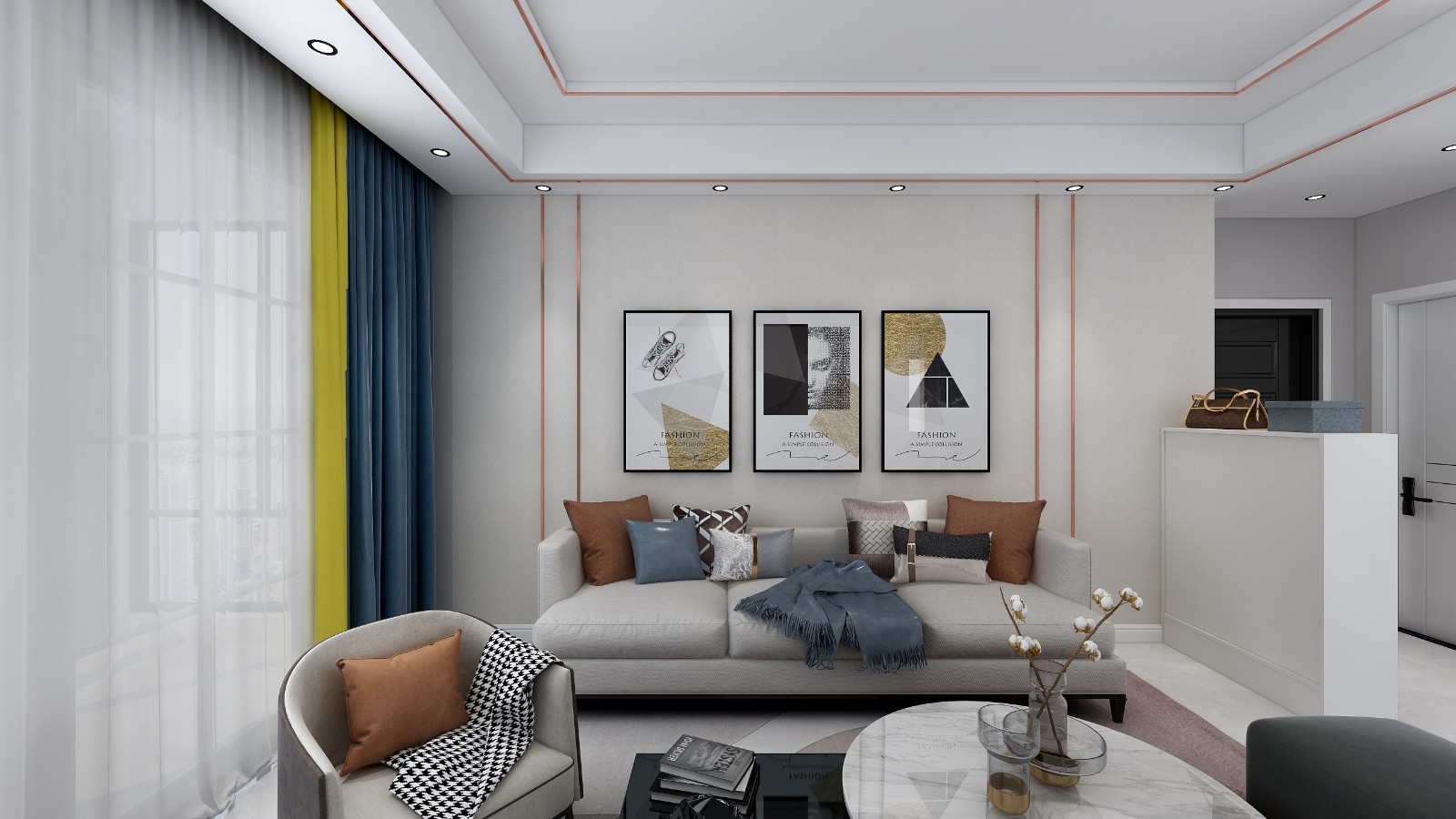 米色墙布玫瑰金线条分线
