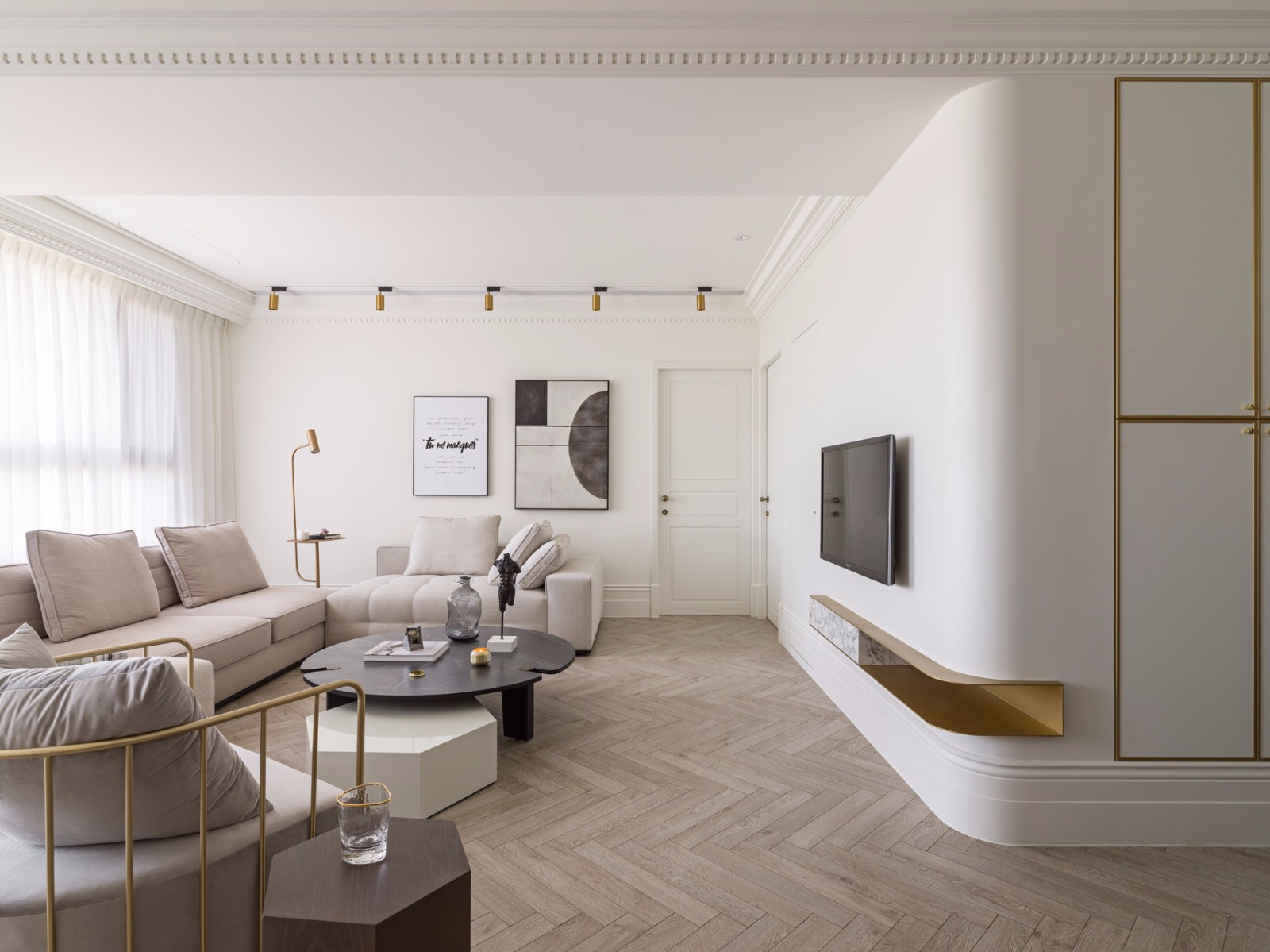 「美式风格不只是水晶灯、线板与饰板堆砌呈现而已。」黄重蔚总监说道,将古典元素与现代家具相互揉合,交错产生一种自然违和感,即是纯正美式风格的精髓。