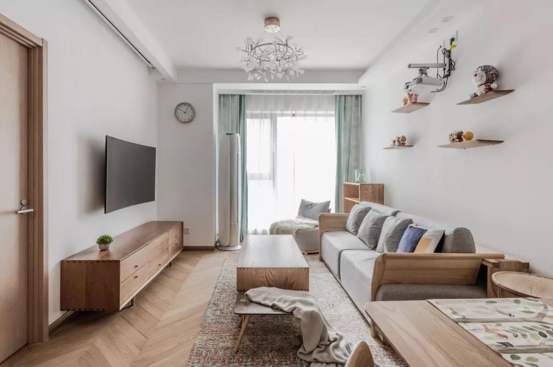 设计师以白色为底,搭配原木风的家具,来打造这样一个舒适、温馨的小窝,虽然房子不大,但住下一家三口刚刚好