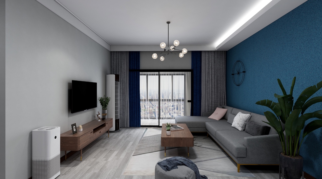 具有豪华感的蓝色及背景造型,提升了卧室的***感