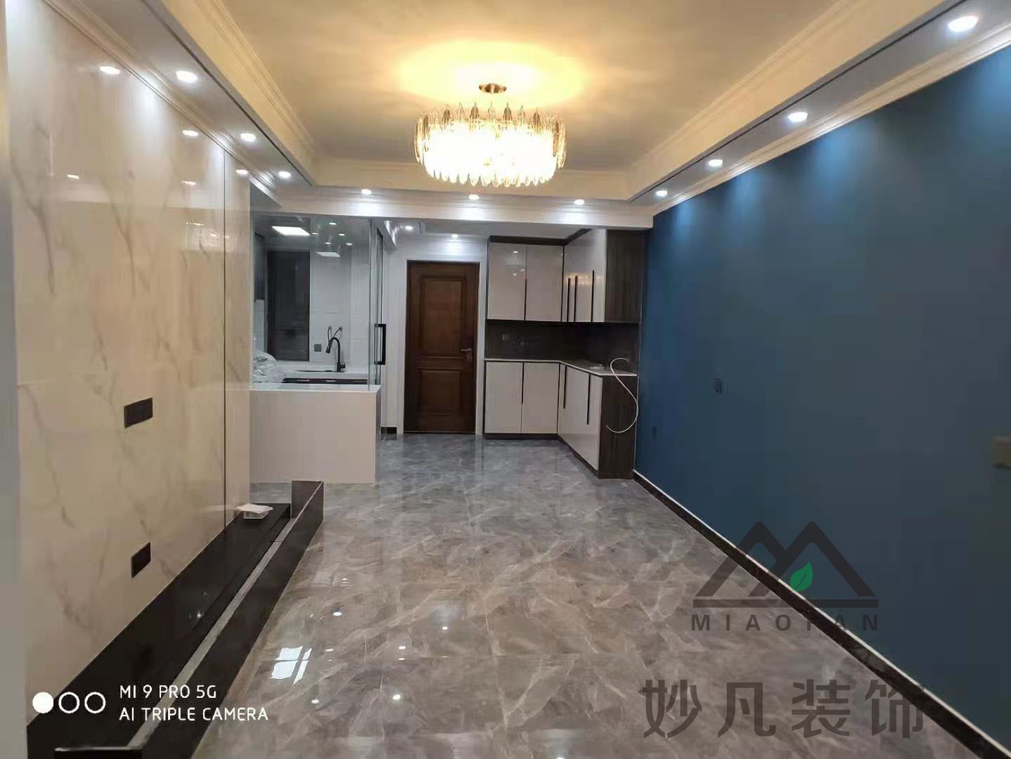 经典的黑白灰搭配蓝色的壁布,增强了整体视觉感。