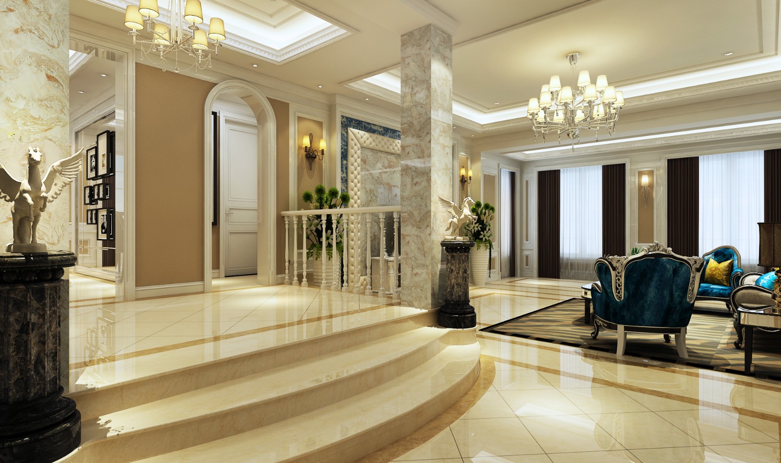 客厅踏步换了方向,整体变大,欧式设计,整体效果