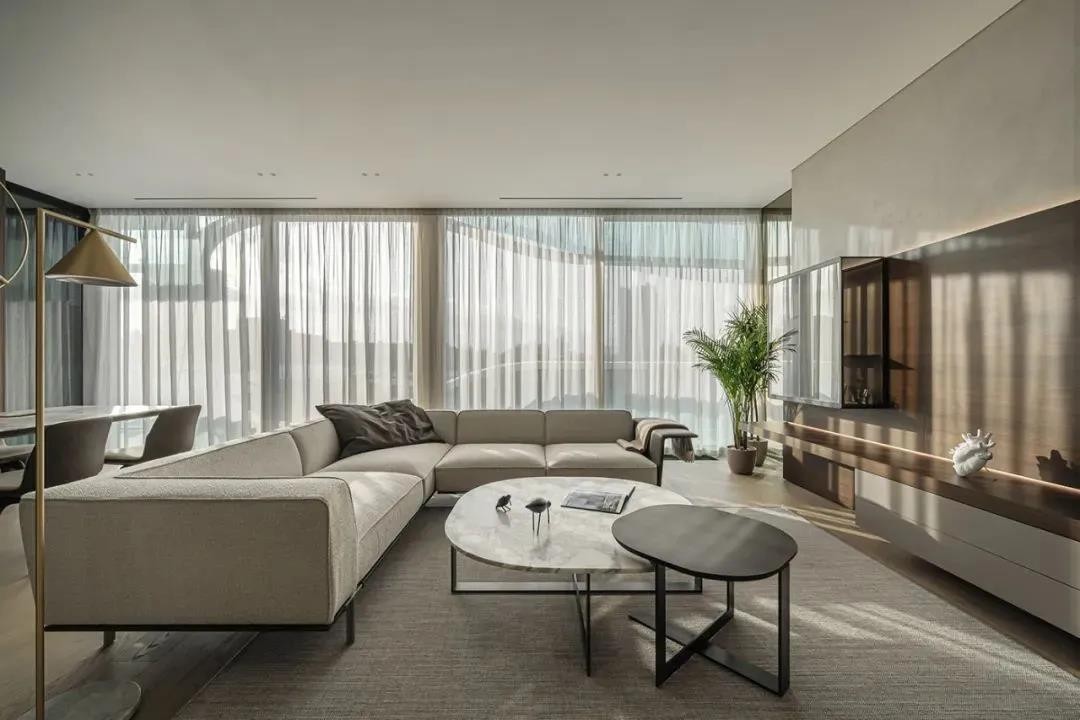 现代风格家居,设计师使用了流畅而简约的线条感加上一些大理石与原木风格元素,以丰富的纹理营造了空间的质感,塑造了惬意与舒适的居住空间。