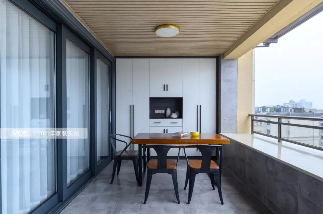 阳台空间十分宽阔,特意打造休闲区,迎着天光,或俯瞰江景,或品茶读书,惬意非常。