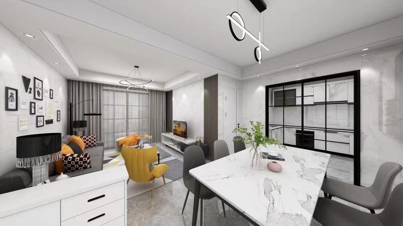 业主是安置房,两套打通。业主喜欢现代风格,并要求四个房间。我们设计方案让客餐厅在一块,房间在一块分隔开,休息区和生活区分隔开。