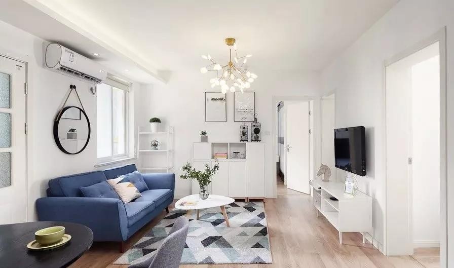 ▲ 蓝白相交的客厅,清新舒适,一目了然。