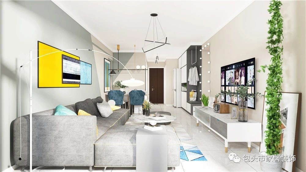 整体现代大方的客厅空间,围绕着实用与舒适的设计,呈现出一种年轻自然的简约氛围感。再加上精致的软装摆设,也让客厅显得更加稳重华丽。