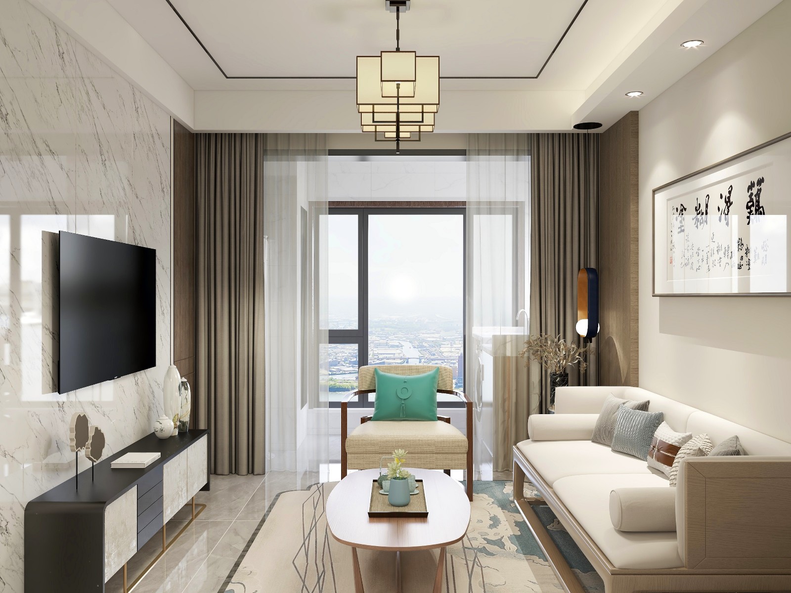 整体的设计风格以简约新中式为主,传递给人们的是中国文化的深远、悠久、厚重、优雅的文化氛围,营造的是极富中国浪漫情调的生活空间。