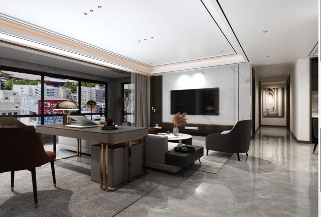 整体黑白灰的现代半商务风格,满足业主的年轻化审美要求