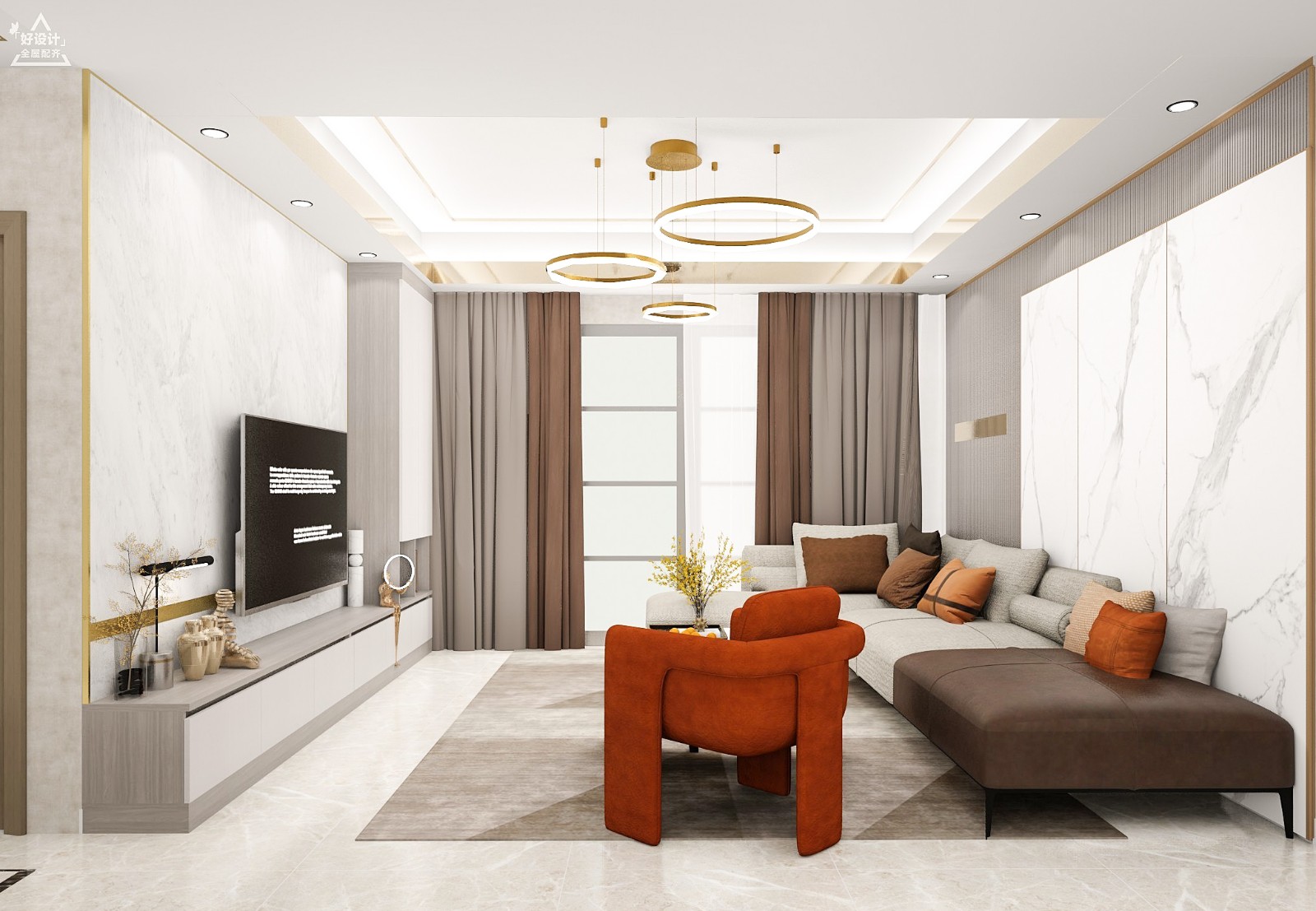 #书房#书房增加了爱马仕橙为点缀,以黑爵木的柜身搭配白色门板、提升质感