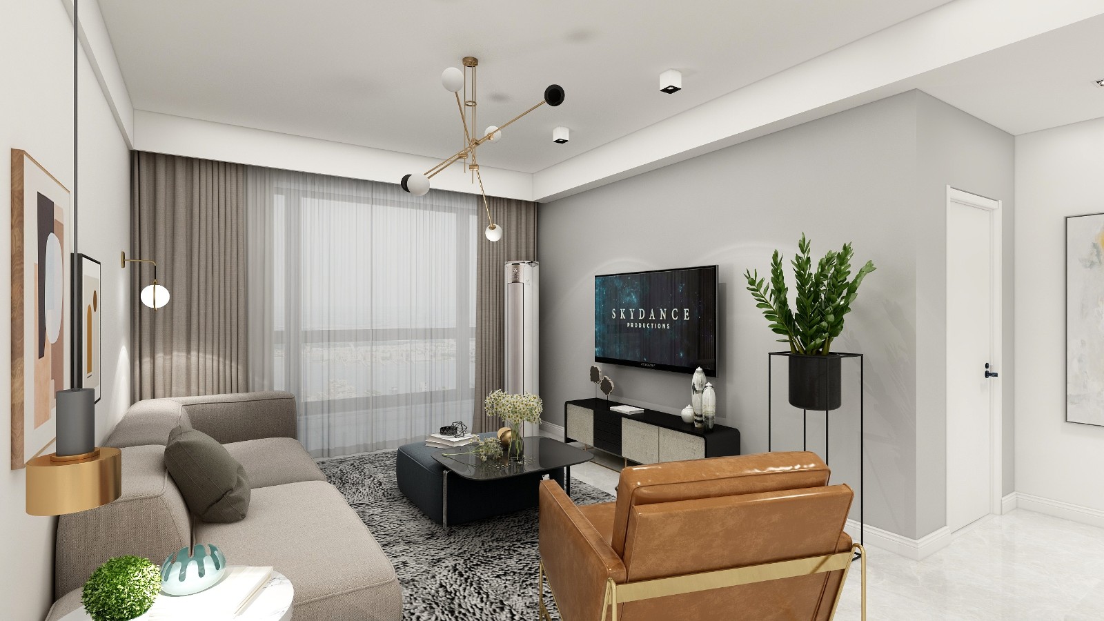 整体结构方正,户型南北通透,厨房较小 做开放式。业主一个人自住,对于整体的居住环境有些小资情怀,本案现代轻奢设计风格为主调,运用灯光的一些设计,将整体的客厅氛围改善。