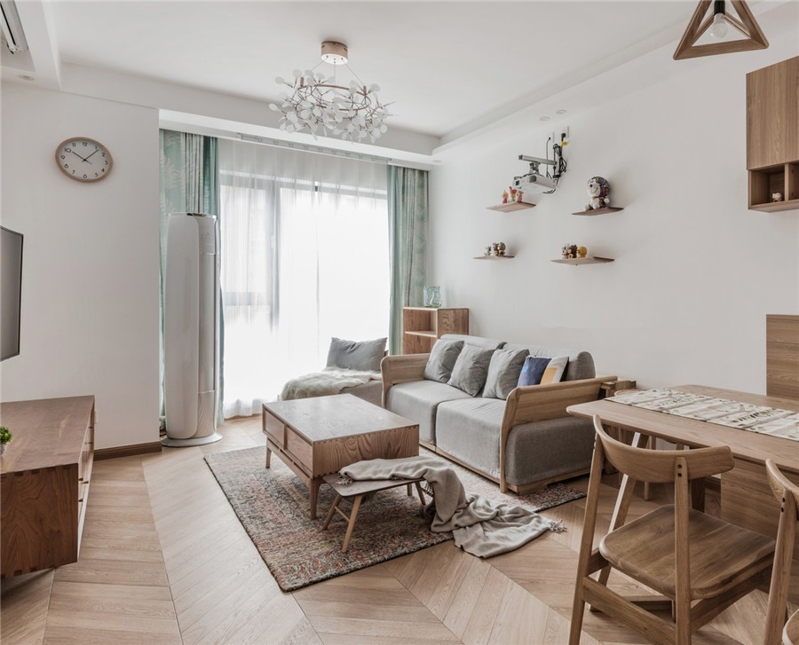 统一的原木色调与白色进行搭配,极简的设计风格可以带来视觉上的清爽简洁,并通过良好的采光,让室内变得特别明亮。
