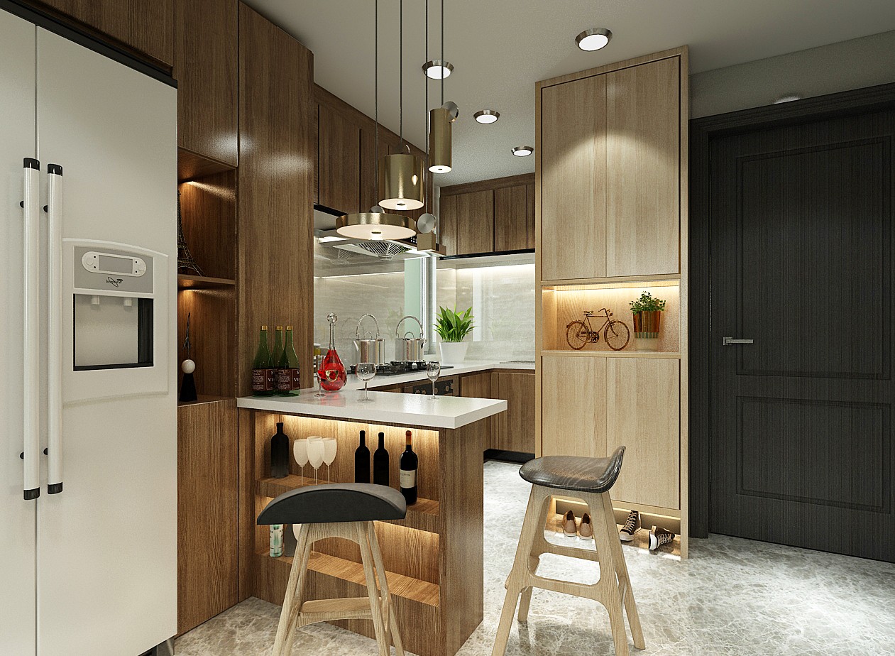 原有空间是没有放置餐桌的合适位置的,所以做了一个吧台作为餐桌。