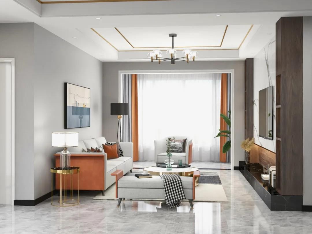 橙色沙发与整个灰色调形成强烈的视觉撞击感,从而给整个冷冽的空间带来一抹温暖活力的气息
