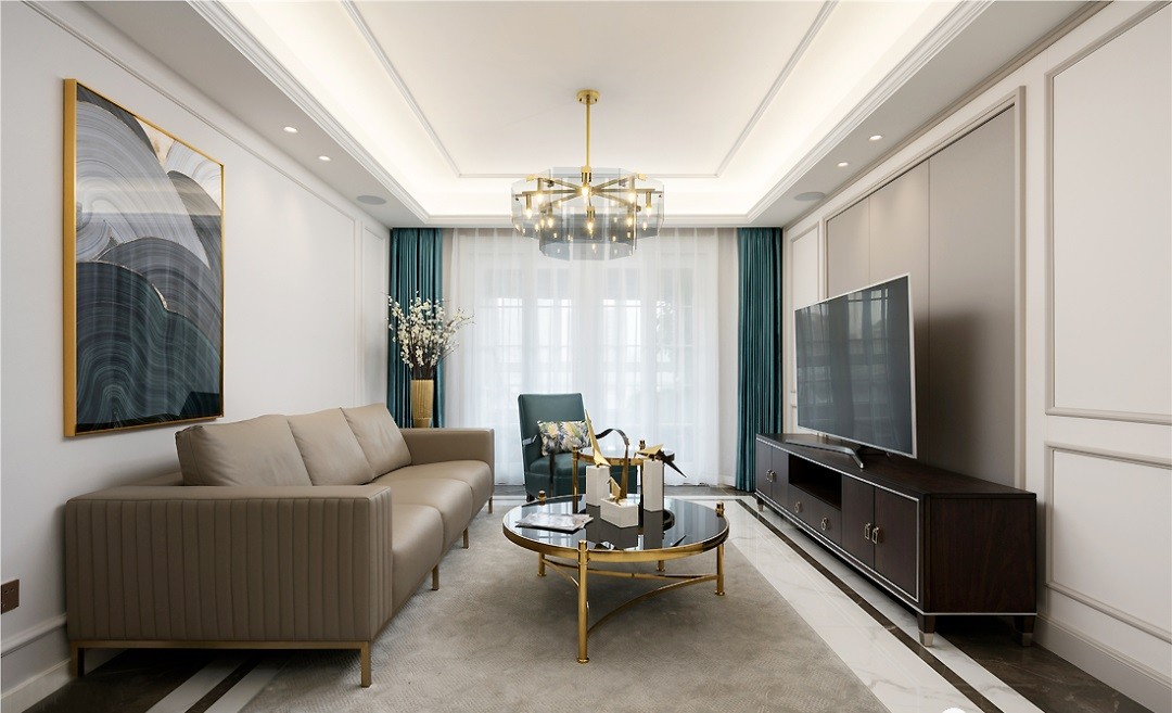 这是一套轻奢美式风格的装修案例,色彩与空间布局相协调,配合特有的设计感,使整个空间更符合主人的不俗格调。