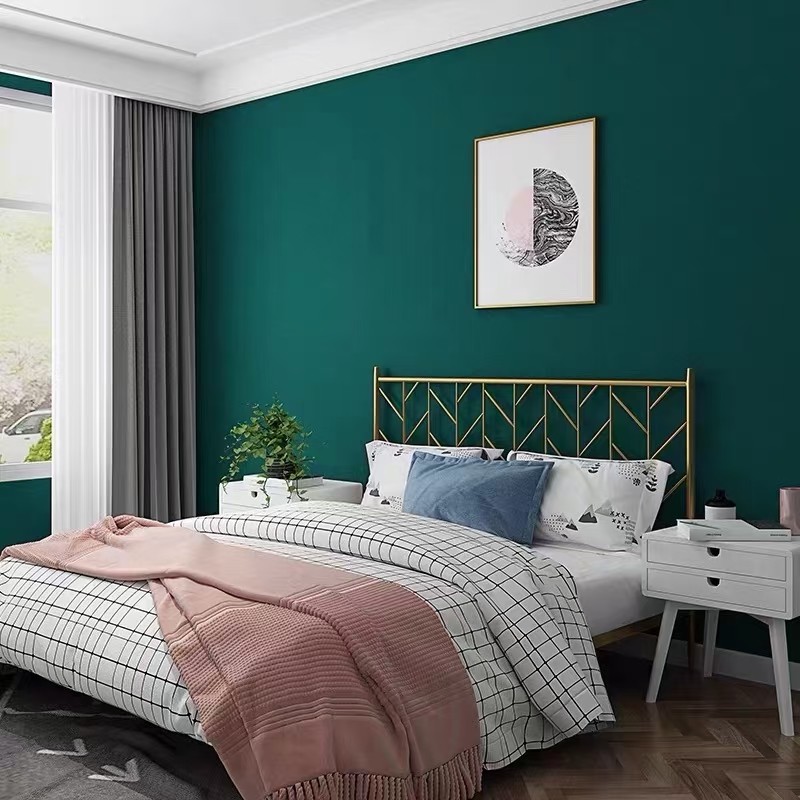 简单的墙漆调色+铁艺的双人床把本案的北欧风格体现的淋漓尽致