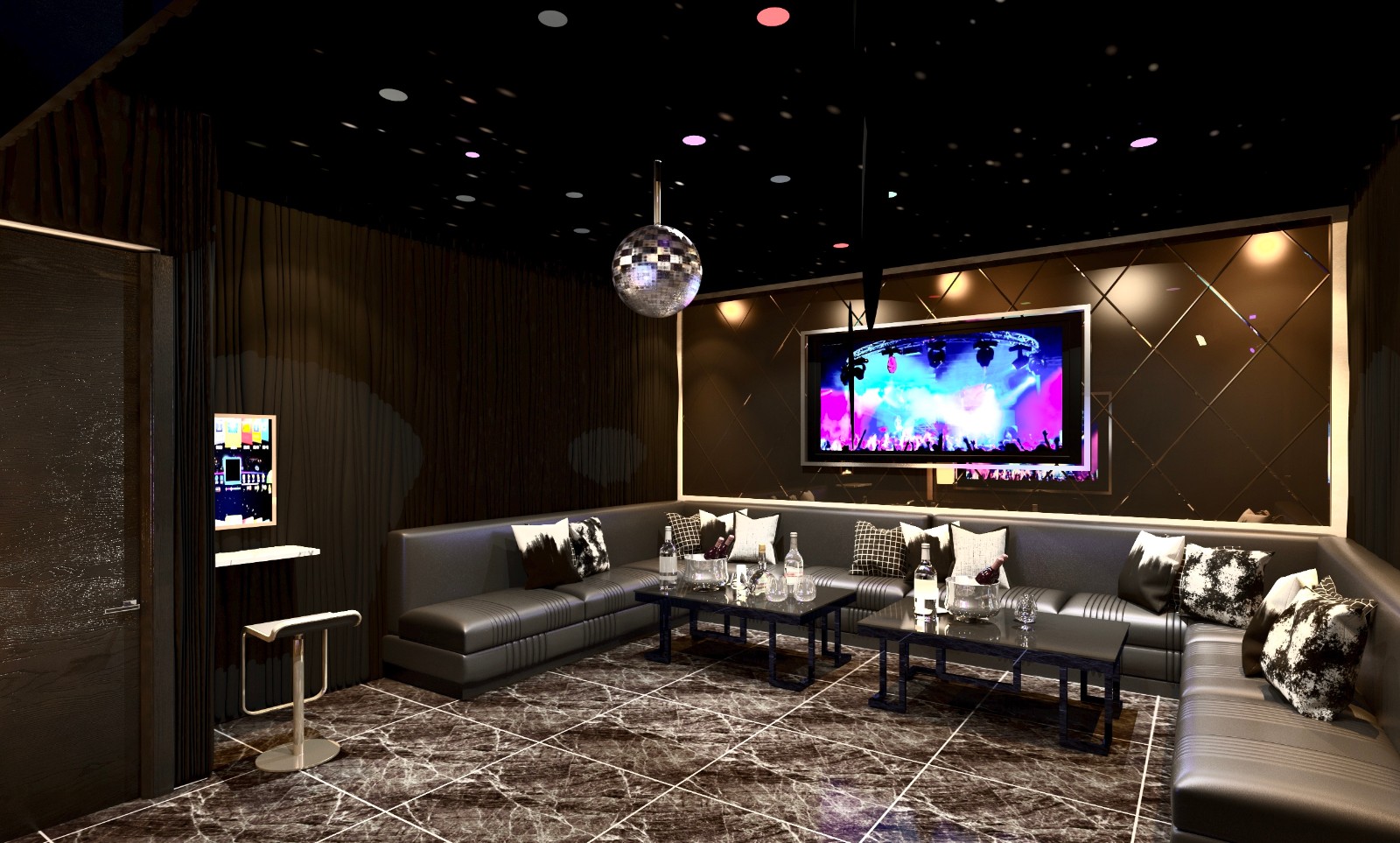 KTV包厢装修设计,应业主要求要求包厢为现代风格,多以金属线装饰,高端大气