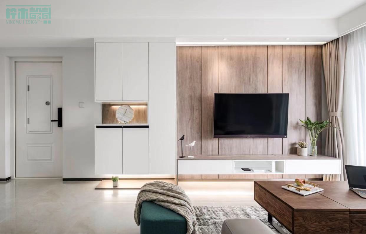 实景图全屋定制柜体将材质统一,电视吊柜在安装前需要做好预埋角铁的工作,柜体起伏的层次,创造出不拘的形式。