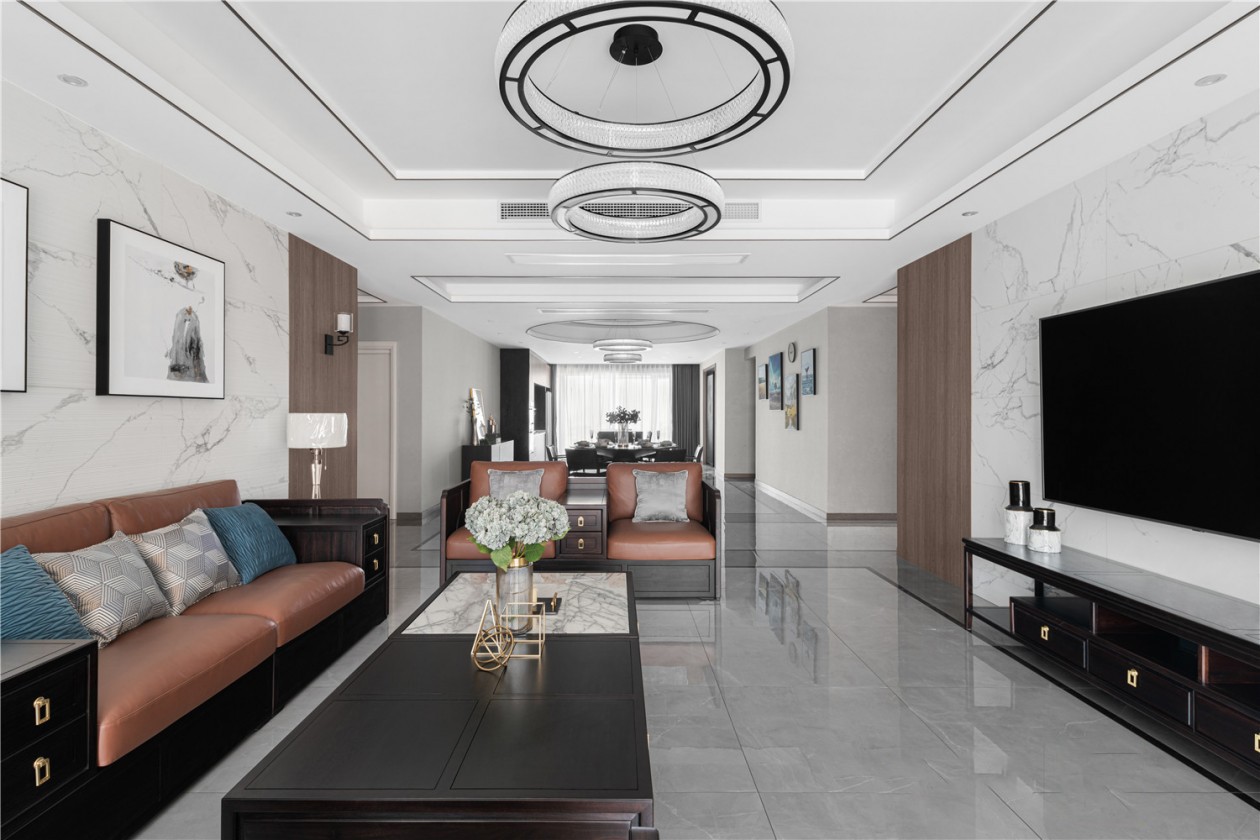 包容与融合是一种积极探索,现代人特有的生活方式结合沉稳内敛的咖色,端庄大气,又兼具功能性。白天拉开窗帘,光线折是一种明亮感受,晚上开启氛围灯,又是另一种居家温馨。