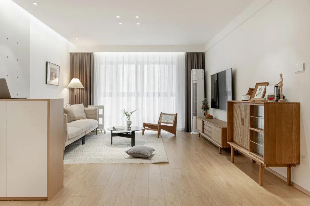 地面满铺「橡木色木纹砖」,视觉上看质感温润,实际却是地砖,耐脏好打理。