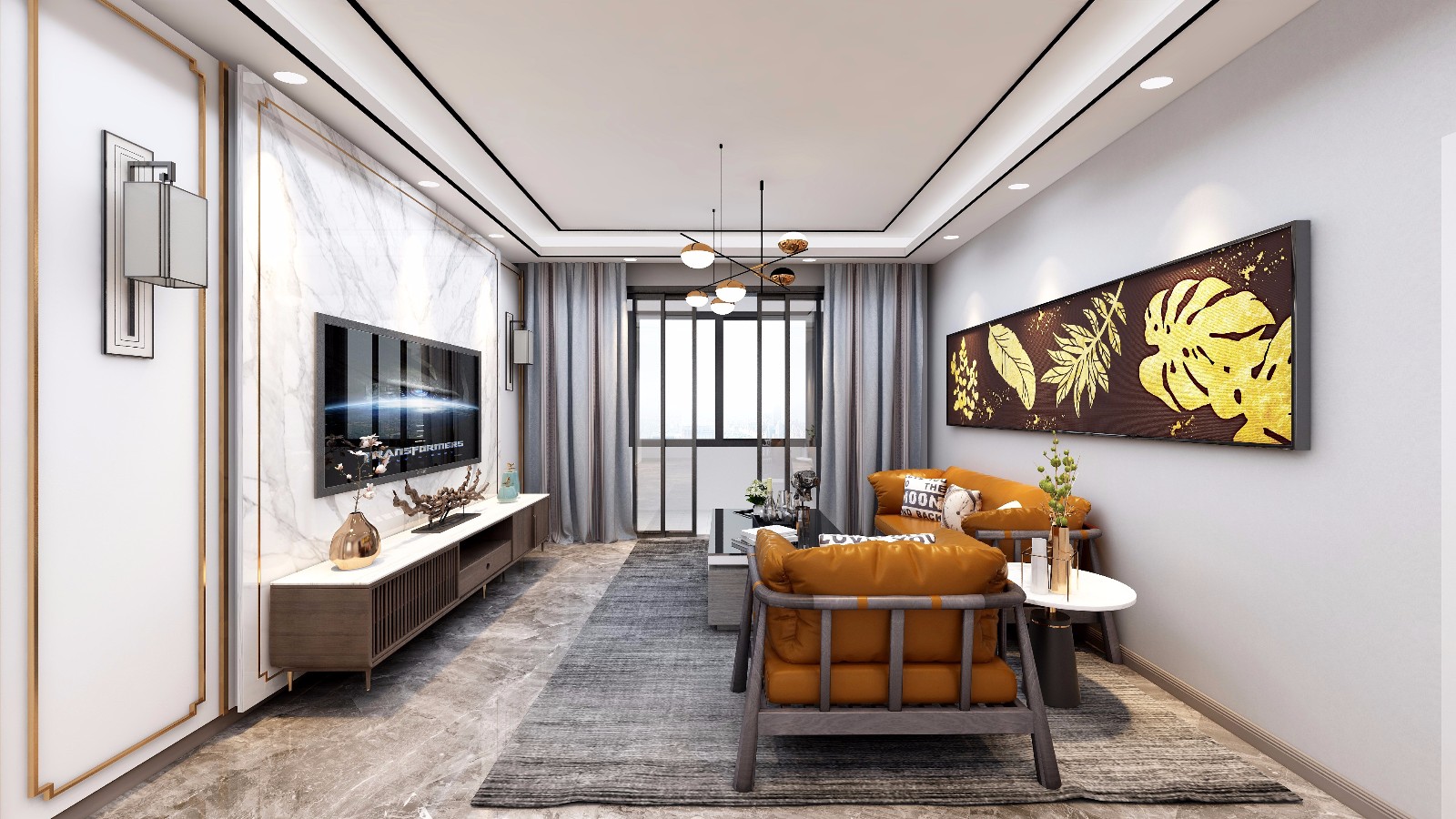 采用现在流行大理石质感的电视背景墙