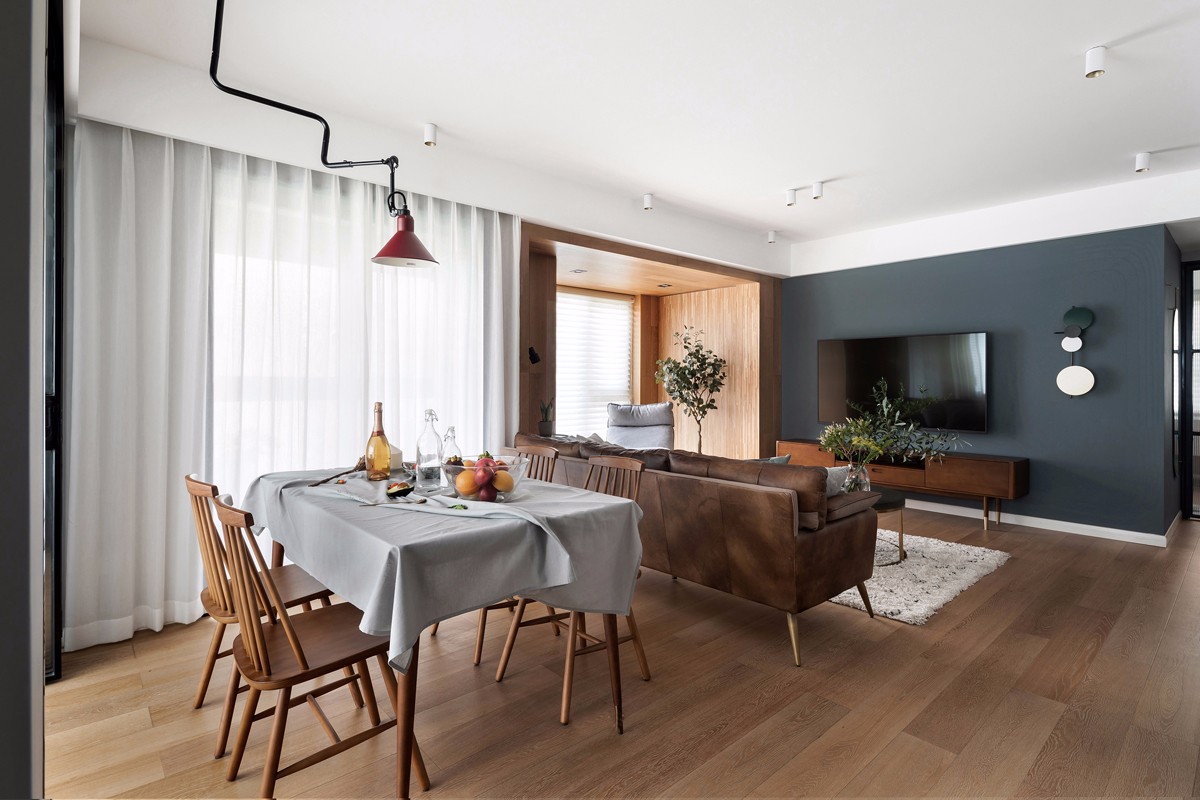 原始结构的东面阳台过大,而客厅开间有限。于是我们把靠客厅的一半阳台纳入到客厅的面积,这样在同时保留功能阳台的情况下,客厅的面积做到舒适度***化。