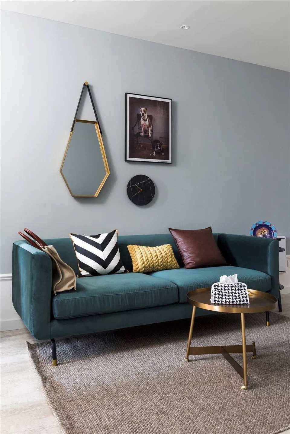 客厅铺地毯,是北欧风的标配,显得沉稳而富有层次感 洁白轻柔的纱帘,给空间增添了一丝清凉,沙发墙上的几何线条装饰镜,也格外惹人注意