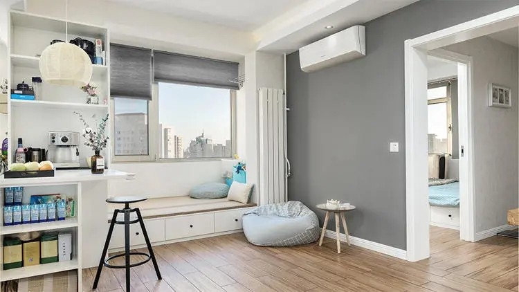 餐厅和卧室之间的区域,暂且叫它多功能客厅 。定制了飘窗榻榻米,代替了传统客厅的”三人位沙发“,同时家里来客人的话,这里也变身为临时客房。飘窗榻榻米,充分利用空间,让小户型摆脱面积不够的尴尬局面。