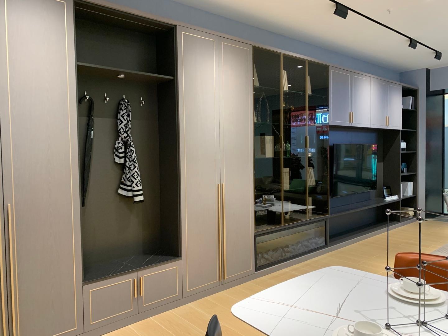 现在轻奢风格,一门到顶,配金属配件,大气时尚
