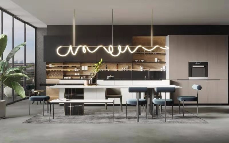 我们给客户的空间做了局部改造,开放式厨房与餐厅扩容为一体,增加现代气息,直线条的设计让回家的心情更加轻松。