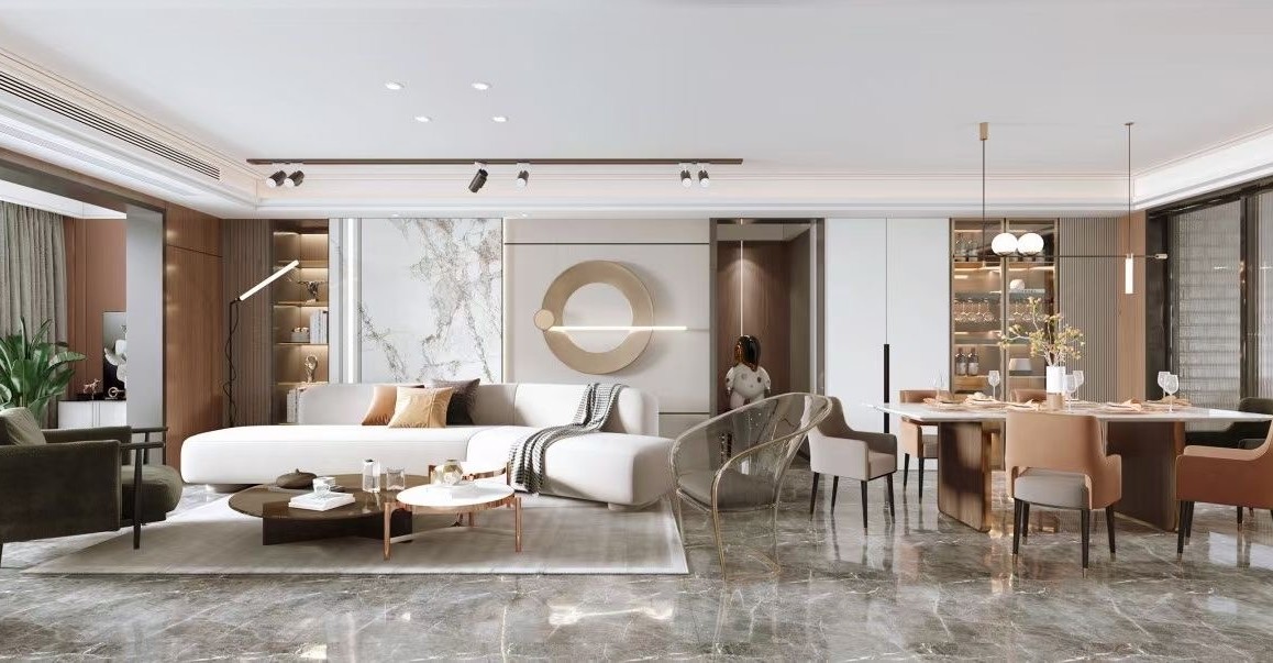 现代轻奢风格,金属线条质感满满,营造出稳定、协调、温馨空间感受!
