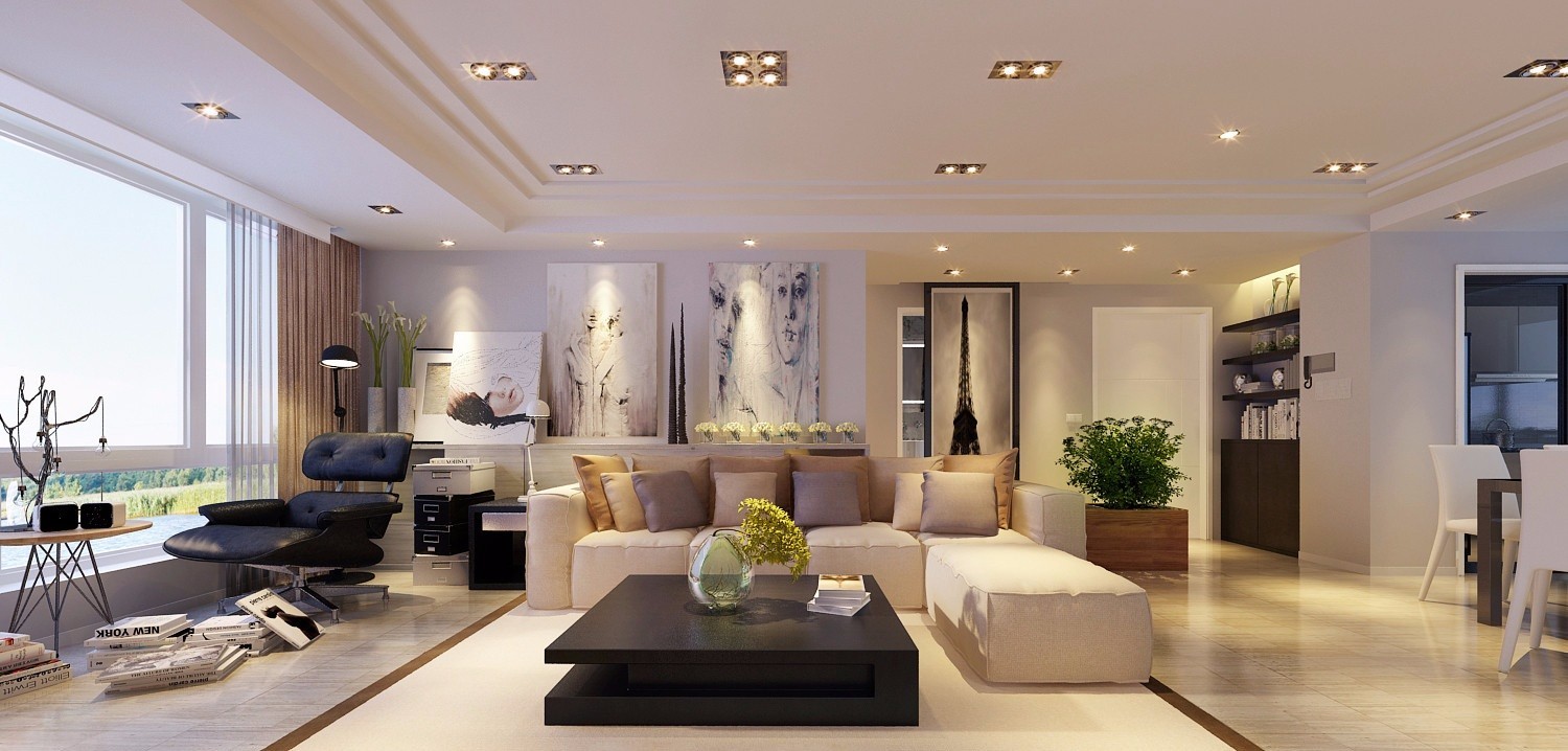 本案设计的特点就是每个空间都没有主灯,下面我们看下不用主灯怎么来保证正常的照明亮度,风格现代简约