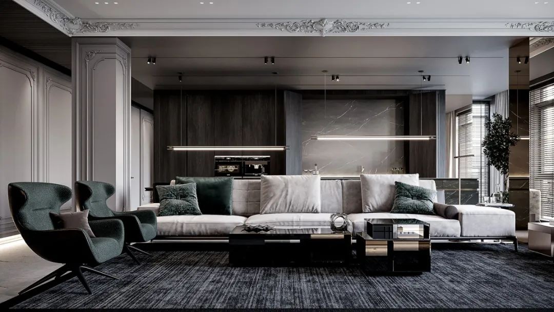 本次案例应用了优雅温柔的欧风石膏线,也融合了现代极简的黑白灰色调。