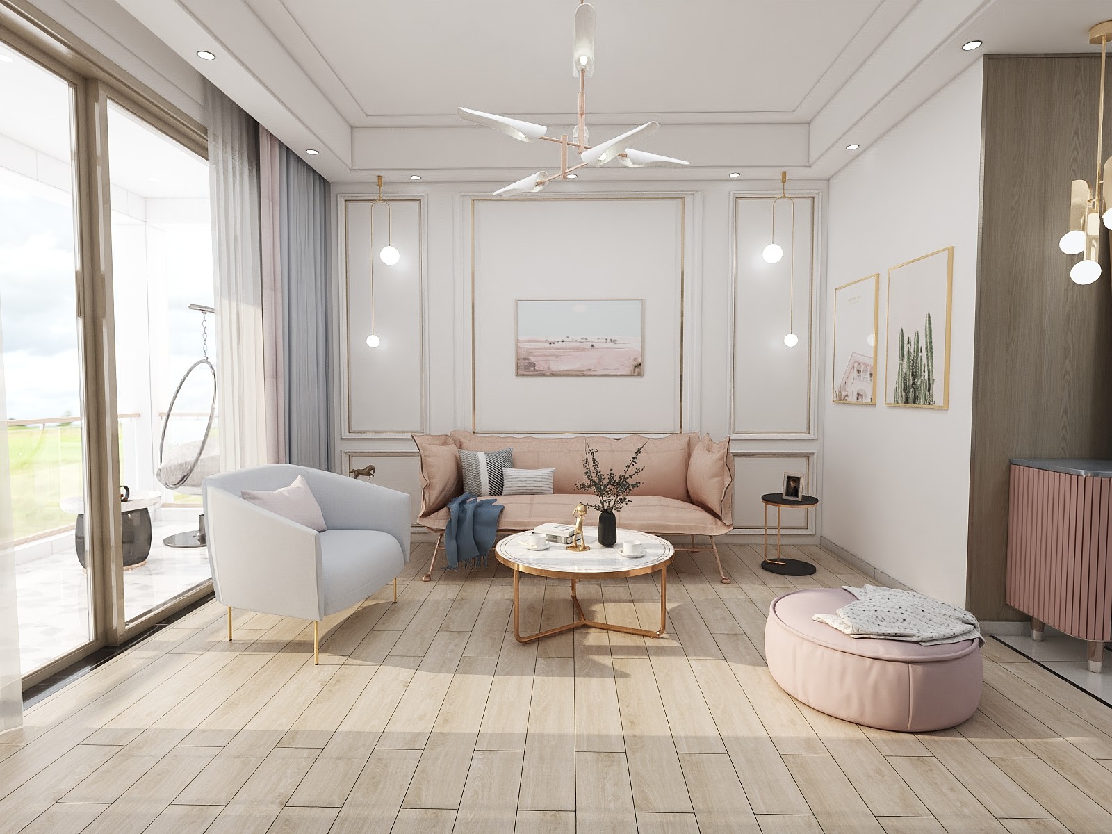 客餐厅以粉色的家具作为着重点,唤起的是女性年少时的少女心。也是缓解***工作压力的另一关。客厅地面采用木纹砖,提升整体质感,客厅满墙的电视柜起到了装饰作用的同时也很好的解决收纳问题。餐厅较大的空间也增加餐边柜做储物的空间,既美观也实用。餐厨区常常有水渍、油渍,餐厅采用大理石瓷砖,防滑且易清洁。