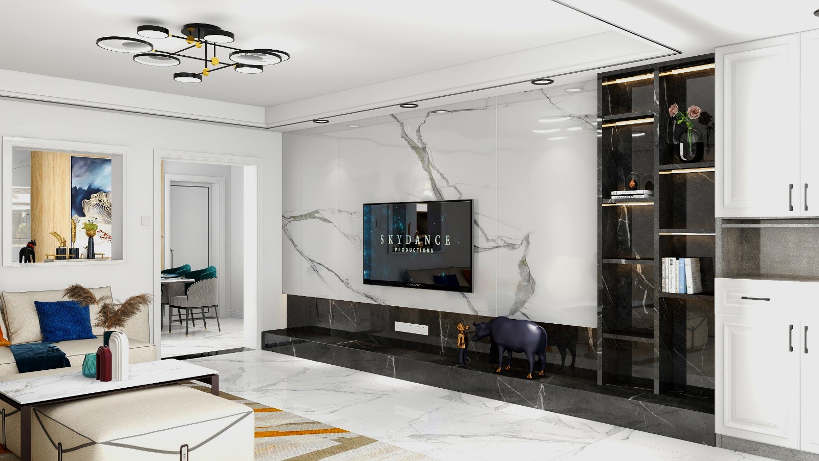 客厅超大,背景墙接了一组收纳柜,闲时,窗边***,品茗闲聊,岂不美哉?